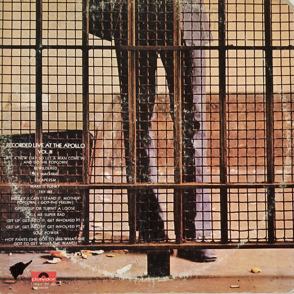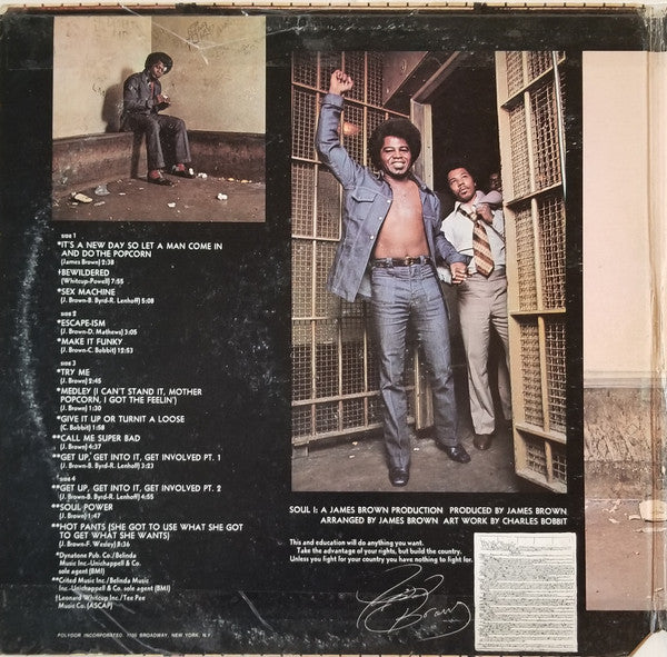 A1. It's A New Day So Let A Man Come In And Do The Popcorn 2:38 A2. Bewildered 7:55 A3. Sex Machine 5:08 B1. Escape-Ism 3:05 B2. Make It Funky 12:53 C1. Try Me 2:45 C2. Fast Medley: (I Can't Stand It, Mother Popcorn, I Got The Feelin') 1:30 C3. Give It Up Or Turnit A Loose 1:58 C4. Call Me Super Bad 4:37 C5. Get Up, Get Into It, Get Involved Pt. 1 3:23 D1. Get Up, Get Into It, Get Involved Pt. 2 4:55 D2. Soul Power 1:47 D3. Hot Pants (She Got To Use What She Got To Get What She Wants) 8:36
