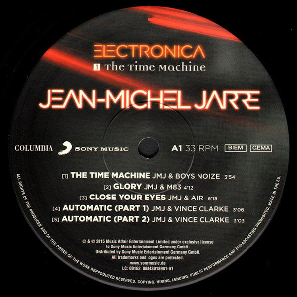 A1. Jean-Michel Jarre, Boys Noize - The Time Machine 3:54 A2. Jean-Michel Jarre, M83 - Glory 4:12 A3. Jean-Michel Jarre, AIR - Close Your Eyes 6:15 A4. Jean-Michel Jarre, Vince Clarke - Automatic (Part 1) 3:06 A5. Jean-Michel Jarre, Vince Clarke - Automatic (Part 2) 3:03 B1. Jean-Michel Jarre, Little Boots - If..! 3:13 B2. Jean-Michel Jarre, Fuck Buttons - Immortals 4:24 B3. Jean-Michel Jarre, Moby - Suns Have Gone 5:55 B4. Jean-Michel Jarre, Gesaffelstein - Conquistador 3:09 C1. Jean-Michel Jarre, Pete Townshend - Travelator (Part 2) 3:10 C2. Jean-Michel Jarre, Tangerine Dream - Zero Gravity 7:12 C3. Jean-Michel Jarre, Laurie Anderson - Rely On Me 2:54 C4. Jean-Michel Jarre, Armin van Buuren - Stardust 4:37 D1. Jean-Michel Jarre, 3D - Watching You 4:09 D2. Jean-Michel Jarre, John Carpenter - A Question Of Blood 2:58 D3. Jean-Michel Jarre, Lang Lang - The Train & The River 7:13