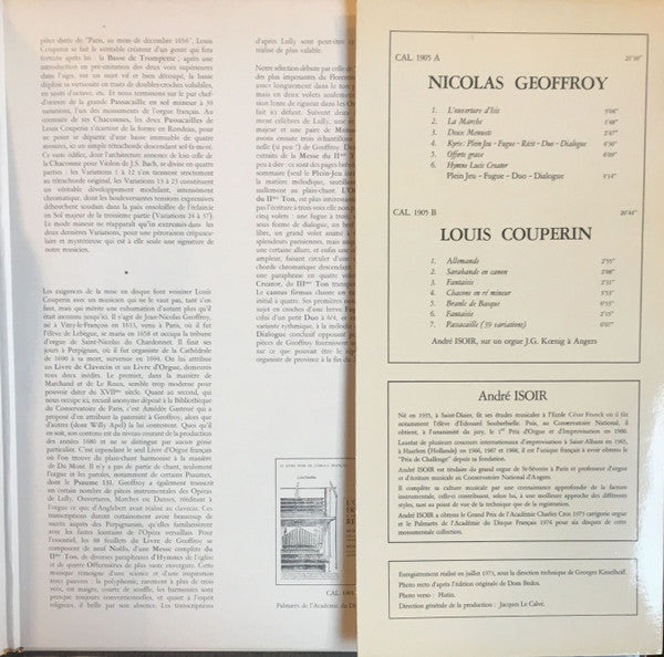 Jean-Nicolas Geoffroy / Louis Couperin - André Isoir