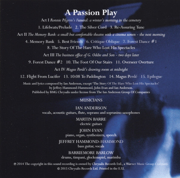 . A Passion Play . Act I Ronnie Pilgrim's Funeral: A Winter's Morning In The Cemetery 1. Lifebeats / Prelude 3:242. The Silver Cord 4:283. Re-Assuring Tune 1:11. Act II The Memory Bank: A Small But Comfortable Theatre With A Cinema Screen - The Next Morning 4. Memory Bank 4:205. Best Friends 1:566. Critique Oblique 4:357. Forest Dance #1 1:348. The Story Of The Hare Who Lost His Spectacles 4:10. Act III The Business Office Of G. Oddie And Son - Two Days Later 9. Forest Dance #2 1:1210. The Foot Of Our Stairs 5:0811. Overseer Overture 3:58. Act IV Magus Perdé's Drawing Room At Midnight 12. Flight From Lucifer 3:5613. 10:08 To Paddington 1:0414. Magus Perdé 3:5315. Epilogue 0:44