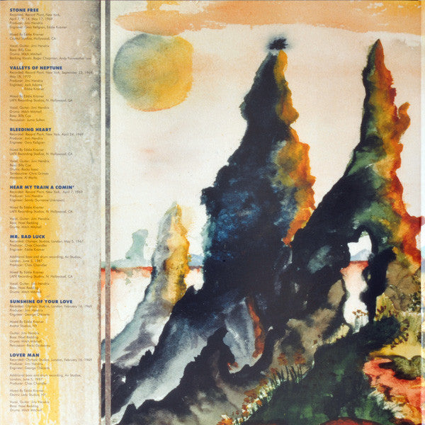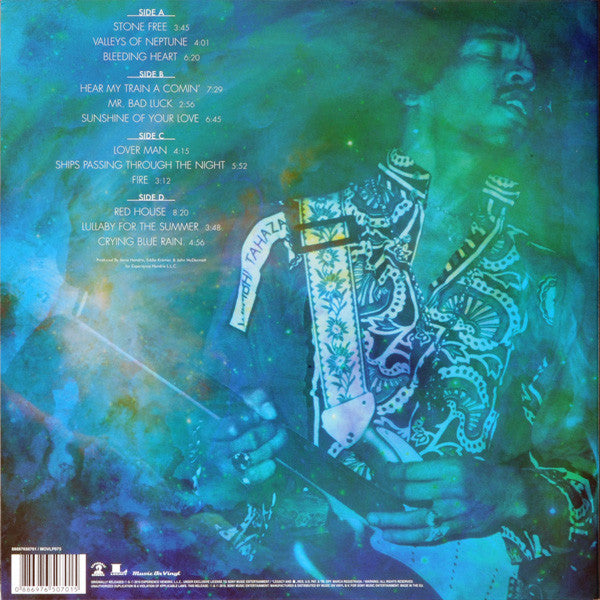 A1. Stone Free 3:45 A2. Valleys Of Neptune 4:01 A3. Bleeding Heart 6:20 B1. Hear My Train A Comin' 7:29 B2. Mr. Bad Luck 2:56 B3. Sunshine Of Your Love 6:45 C1. Lover Man 4:15 C2. Ships Passing Through The Night 5:52 C3. Fire 3:12 D1. Red House 8:20 D2. Lullaby For The Summer 3:48 D3. Crying Blue Rain 4:56