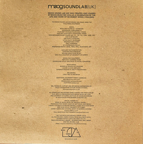 Phonographic Copyright (p) Moog Recordings Library Copyright (c) Moog Recordings Library Recorded At Cafe Oto Published By Copyright Control Pressed By GZ Media Distributed By Cargo Records UK Ltd.