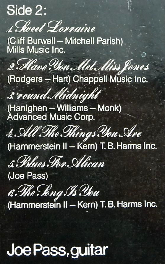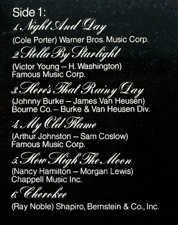 A1. Night And Day 3:32 A2. Stella By Starlight 5:11 A3. Here's That Rainy Day 3:36 A4. My Old Flame 5:18 A5. How High The Moon 5:01 A6. Cherokee 3:36 B1. Sweet Lorraine 4:08 B2. Have You Met Miss Jones? 4:42 B3. 'Round Midnight 3:37 B4. All The Things You Are 4:00 B5. Blues For Alican 5:28 B6. The Song Is You 4:36