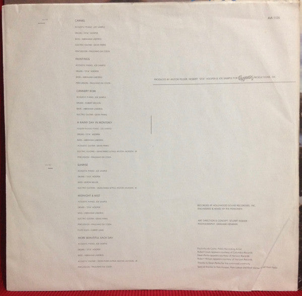 A1. Carmel 5:36 A2. Paintings 5:24 A3. Cannery Row 4:02 A4. A Rainy Day In Monterey 5:45 B1. Sunrise 5:23 B2. Midnight And Mist 6:50 B3. More Beautiful Each Day 6:28
