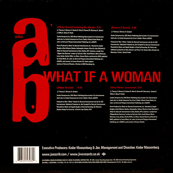 A1. What If A Woman (Allstar Remix) 3:41 A2. What If A Woman (Smoove 5 Remix ) 4:46 B1. What If What If A Woman (Album Version) 4:16 B2. What If A Woman (All Star Remix Insramental) 3:41