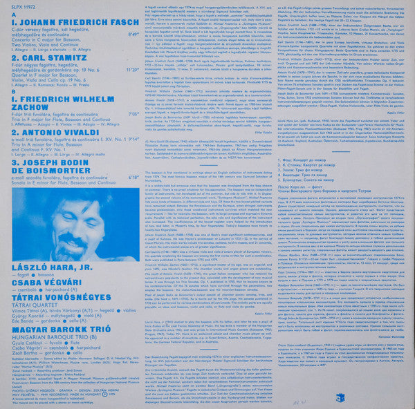 . C-Dúr Verseny Fagottra, Két Hegedűre, Mélyhegedűre És Continuóra 8:49. F-Dúr Négyes Fagottra, Hegedűre, Mélyhegedűre És Gordonkára Op. 19 No. 6 11:20. F-Dúr Trió Fuvolára, Fagottra És Continuóra 7:05. A-Moll Trió Fuvolára, Fagottra És Continuóra F. XV. No. 1 9:14B3. E-Moll Szonáta Fuvolára, Fagottra És Continuóra 6:18