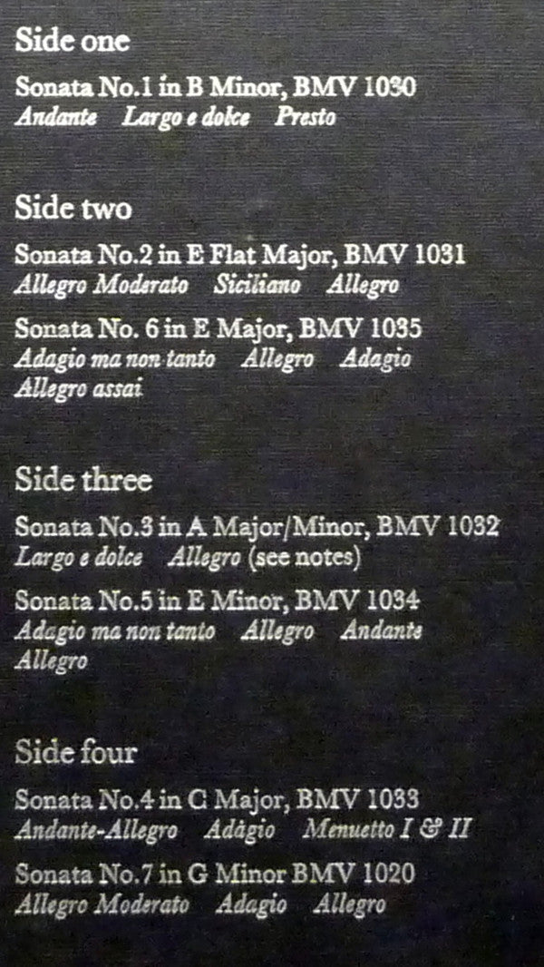 Works included according to the Back-Werke-Verzeichnis (BWV misspelled as BMV on cover and center labels): BWV 1020 BWV 1030, BWV 1031 to 1035.