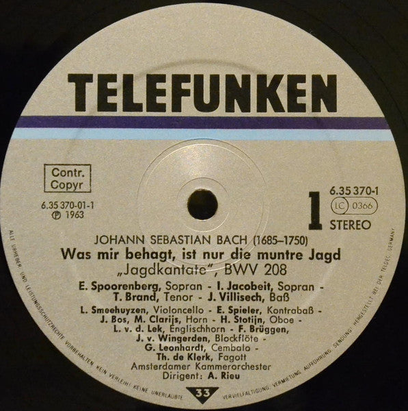 A. Was Mir Behagt, Ist Nur Die Muntre Jagd "Jagdkante", BWV 208 B. Was Mir Behagt, Ist Nur Die Muntre Jagd "Jagdkante", BWV 208 C. Schleicht, Spielende Wellen, Kantate BWV 206 D. Schleicht, Spielende Wellen, Kantate BWV 206