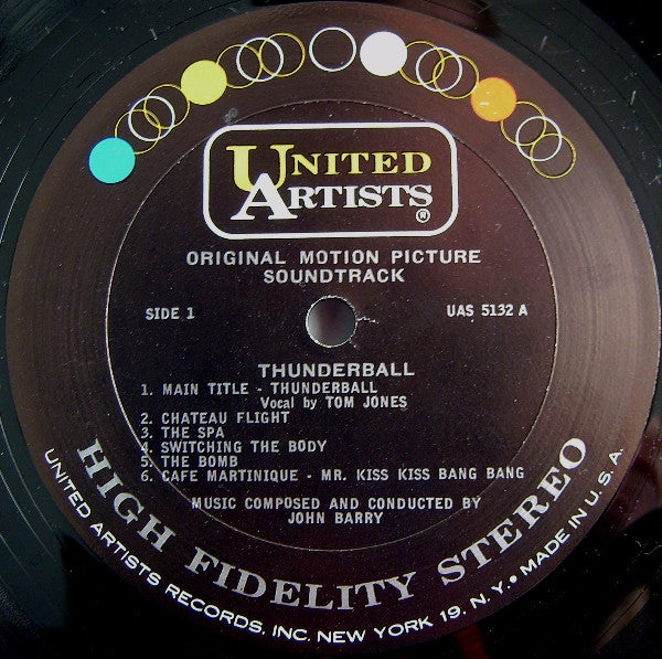 A1. Thunderball 2:59 A2. Chateau Flight 2:26 A3. The Spa 2:40 A4. Switching The Body 2:45 A5. The Bomb 5:42 A6. Cafe Martinique 3:42 B1. Thunderball 4:16 B2. Death Of Fiona 2:39 B3. Bond Below Disco Volante 4:12 B4. Search For Vulcan 2:32 B5. 007 2:30 B6. Mr. Kiss Kiss Bang Bang 2:48