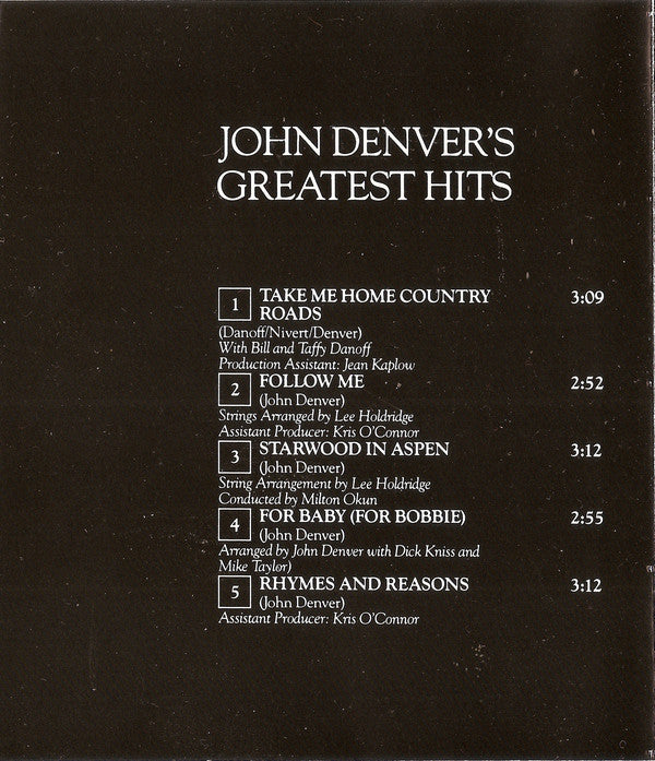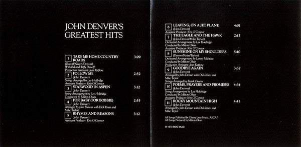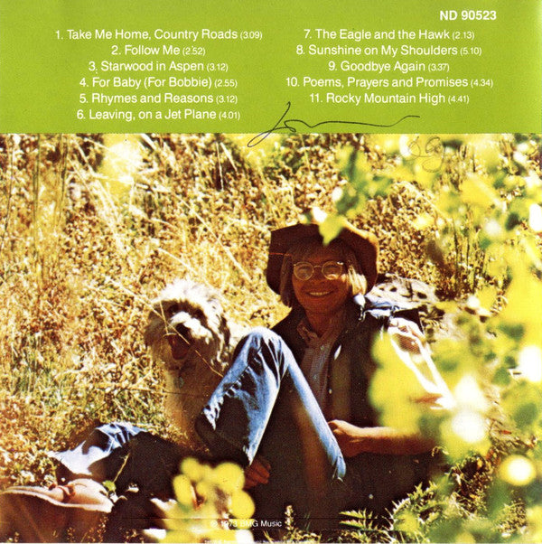 1. Take Me Home, Country Roads 3:092. Follow Me 2:523. Starwood In Aspen 3:124. For Baby (For Bobbie) 2:555. Rhymes And Reasons 3:126. Leaving, On A Jet Plane 4:017. The Eagle And The Hawk 2:138. Sunshine On My Shoulders 5:109. Goodbye Again 3:3710. Poems, Prayers And Promises 4:3411. Rocky Mountain High 4:41