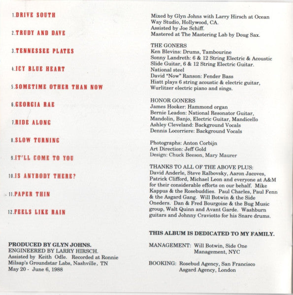 Phonographic Copyright (p) A&M Records, Inc. Copyright (c) A&M Records, Inc. Copyright (c) Lillybilly Music Recorded At GroundStar Laboratories Mixed At Ocean Way Recording Mastered At The Mastering Lab Distributed By Polydor Distributed By PolyGram Pressed By PDO, Germany