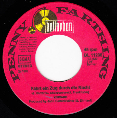 This release is a recording by the solo artist John Kincade (even though it is credited to just "Kincade" on cover and labels). Side A is a German-language version of [m69885 which wasn't performed by John Kincade but by the "band" (in reality a studio-project) Kincade and featured the vocals of John Carter (2).