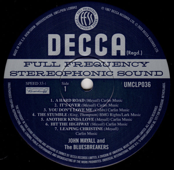 John Mayall And The Bluesbreakers* - A Hard Road (LP, Album, RE)