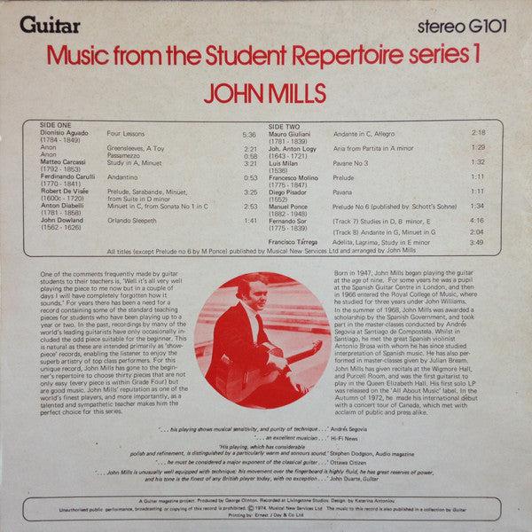 A1. Four Lessons 5:36 A2. Greensleeves, A Toy 2:21 A3. Passamezzo 0:58 A4. Study In A, Minuet 3:21 A5. Andantino 0:53 A6. Prelude, Sarabande, Minuet From Suite In D Minor 3:25 A7. Minuet In C, From Sonata No 1 In C 2:53 A8. Orlando Sleepeth 1:41 B1. Andante In C Allegro 2:18 B2. Aria From Partita In A Minor 1:29 B3. Pavane No 3 1:32 B4. Prelude 1:11 B5. Pavana 1:11 B6. Prelude No 6 1:34 B7. Studies In D ,B Minor, E 4:16 B8. Andante In G, Minuet In G 2:04 B9. Adelita, Lagrima, Study In E Minor 3:49