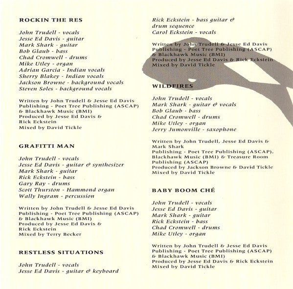 Jesse Ed Davis published by Blackhawk; Mark Shark by Treasure Room; Quiltman by Quilt Man Music.