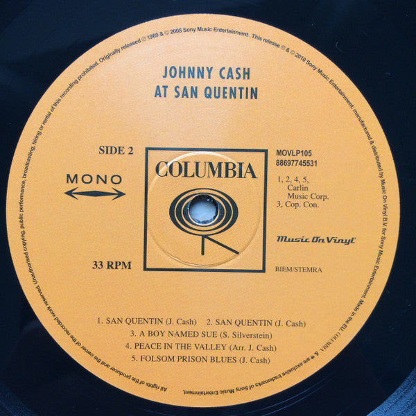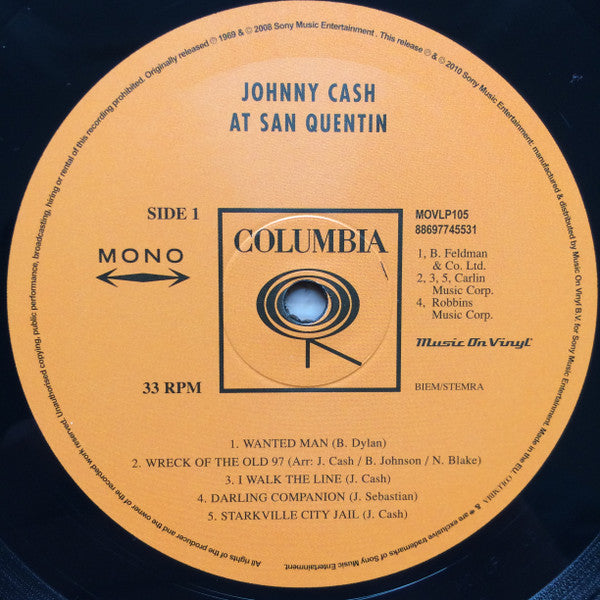 A1. Wanted Man A2. Wreck Of The Old 97 A3. I Walk The Line A4. Darling Companion A5. Starkville City Jail B1. San Quentin B2. San Quentin B3. A Boy Named Sue B4. Peace In The Valley B5. Folsom Prison Blues