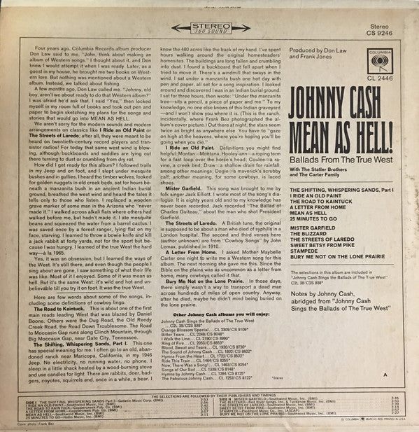 A1. The Shifting, Whispering Sands, Part 1 2:53 A2. I Ride An Old Paint 2:56 A3. The Road To Kaintuck 2:42 A4. A Letter From Home 2:32 A5. Mean As Hell 3:07 A6. 25 Minutes To Go 3:11 B1. Mister Garfield 3:46 B2. The Blizzard 3:50 B3. The Streets Of Laredo 3:39 B4. Sweet Betsy From Pike 3:14 B5. Stampede 2:57 B6. Bury Me Not On The Lone Prairie 2:27
