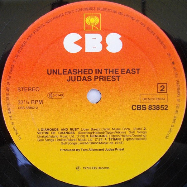 Recorded live at Koseinenkin Hall and Nakano Sunplaza Hall, Tokyo, Japan. Mixed at Startling Studios, Ascot, England. A1 to A3 : Arnakata Music Limited / Warner Brothers Mus. Ltd. A4, B2 to B4 : Gull Songs Limited / Island Music Ltd. A5 : Fleetwood Music Limited B1: Carlin Music Corp. Made in Holland. © 1979 CBS Inc. ℗ 1979 CBS Records