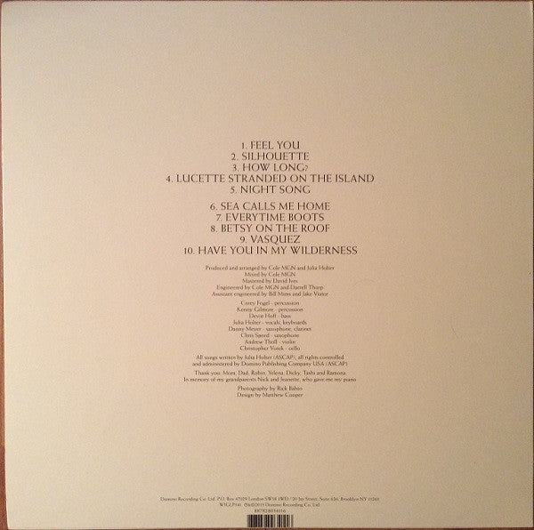 A1. Feel You A2. Silhouette A3. How Long? A4. Lucette Stranded On The Island A5. Sea Calls Me Home B1. Night Song B2. Everytime Boots B3. Betsy On The Roof B4. Vasquez B5. Have You In My Wilderness