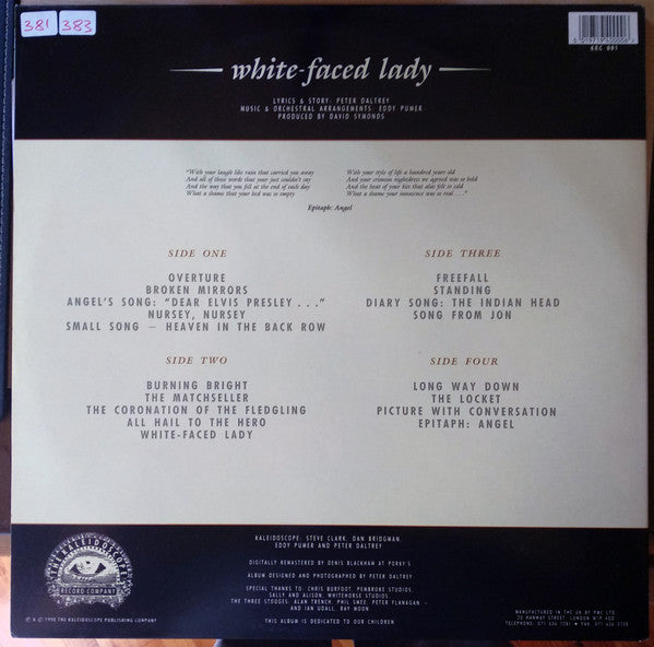 Phonographic Copyright (p) The Kaleidoscope Publishing Company Phonographic Copyright (p) The Kaleidoscope Record Company Copyright (c) The Kaleidoscope Publishing Company Copyright (c) The Kaleidoscope Record Company Copyright (c) Peter Daltrey Manufactured By PWC Ltd. Pressed By MPO Published By The Kaleidoscope Publishing Company