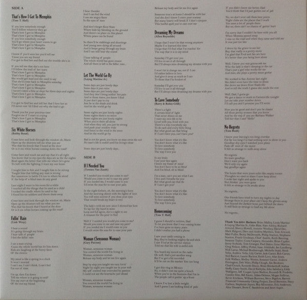 A1. That's How I Got To Memphis 4:03 A2. Six White Horses 2:41 A3. Fallin' Rain 9:38 A4. Let The World Go By 3:44 B1. If I Needed You 3:54 B2. Woman (Sensuous Woman) 3:24 B3. Dreaming My Dreams 2:50 B4. To Love Somebody 3:21 B5. Homecoming 3:24 B6. No Regrets 3:51