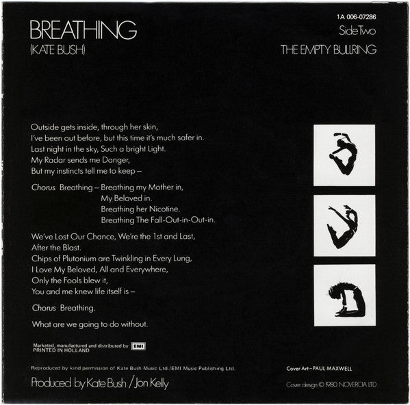 Phonographic Copyright (p) EMI Records Ltd.Copyright (c) Novercia Ltd.Marketed By EMIManufactured By EMIDistributed By EMIPublished By Kate Bush MusicPublished By EMI Music PublishingLacquer Cut At Bovema / EMI StudiosLacquer Cut At Bovema / EMI StudiosData provided by Discogs
