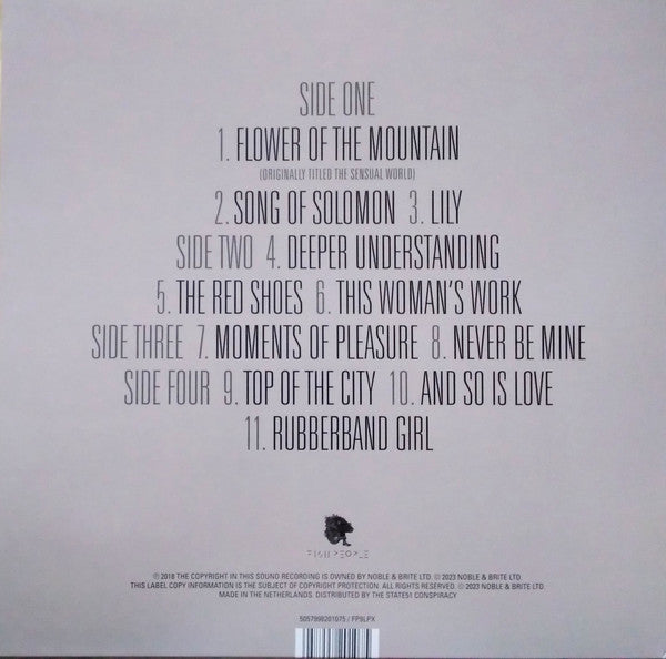 A1. Flower Of The Mountain (Originally Titled The Sensual World) 5:14 A2. Song Of Solomon 4:44 A3. Lily 4:04 B4. Deeper Understanding 6:33 B5. The Red Shoes 4:58 B6. This Woman's Work 6:29 C7. Moments Of Pleasure 6:31 C8. Never Be Mine 5:05 D9. Top Of The City 4:23 D10. And So Is Love 4:20 D11. Rubberband Girl 4:36