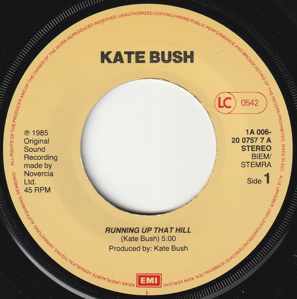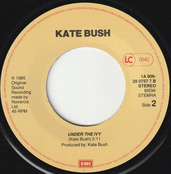 Copyright (c) Kate Bush Music Publishing Ltd. Copyright (c) EMI Phonographic Copyright (p) Novercia Ltd. Copyright (c) Novercia Ltd. Marketed By EMI Manufactured By EMI Distributed By EMI Printed By EMI Services Benelux B.V. Lacquer Cut At Bovema / EMI Studios Lacquer Cut At Bovema / EMI Studios