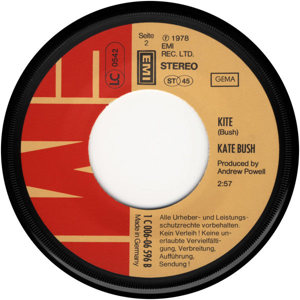 Released in a picture sleeve, with artist bio and TV show ad for the first [a3046168's "Bio's Bahnhof" show (Kate's first German TV appearance) in German on the back.