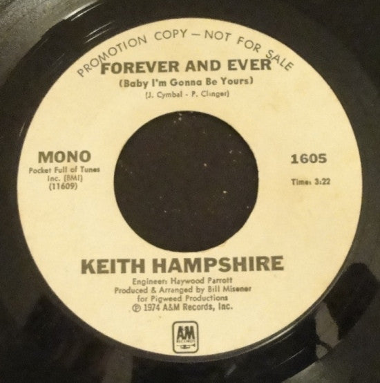 Keith Hampshire - Forever And Ever (Baby I'm Gonna Be Yours) (7", Mono, Promo, Styrene)