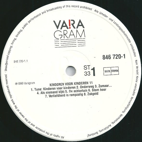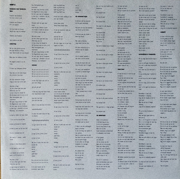 A1. Kinderen Voor Kinderen 0:58 A2. Onderweg 3:53 A3. Zomaar... 3:17 A4. Als Niemand Kijkt 3:29 A5. De Achtertuin 3:32 A6. Stom Hoor 3:49 A7. Verliefdheid Is Rampzalig 2:53 A8. Zakgeld 3:44 B1. Ik Wil Nog Dit, Ik Wil Nog Dat 3:46 B2. Annemiek 3:46 B3. Allemaal Kabaal 3:53 B4. Onzichtbaar 3:51 B5. De Kerstezel 4:20 B6. Naar Bed 2:44 B7. Als Niemand Kijkt (Meezingversie) 3:29