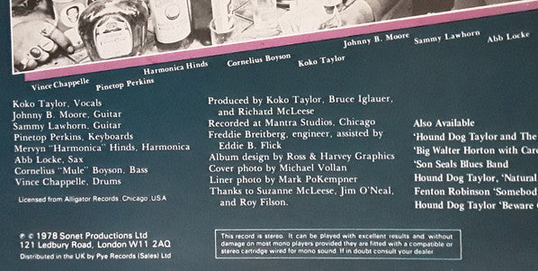 Phonographic Copyright (p) Sonet Productions Ltd. Copyright (c) Sonet Productions Ltd. Distributed By Pye Records (Sales) Ltd. Recorded At Mantra Studios, Chicago Licensed From Alligator Records Published By Anglo-Pic Music Published By Jewel Music Published By Island Music Published By Copyright Control Published By Sonet Publishing Published By Jewel Music Publishing Lacquer Cut At Pye Studios Phonographic Copyright (p) Alligator Records