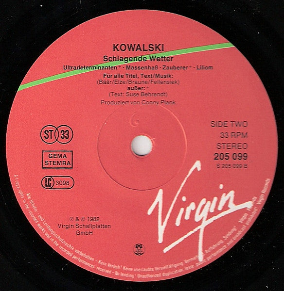 This is a variant with a glossy cover. The variant with the matte cover is here: [r26322137 Recorded and mixed: Conny's Studio, April and Juli 82 Issued with printed inner sleeve (i.a. lyrics, track durations, credits). The catalogue number is printed as 205 099-320 on the sleeve and as 205 099 on the disc labels. This version is sung in German. ℗ & © 1982 Virgin Schallplatten GmbH