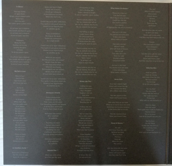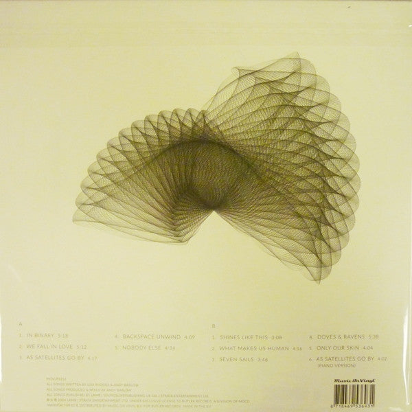 A1. In Binary 5:18 A2. We Fall In Love 5:12 A3. As Satellites Go By 4:17 A4. Backspace Unwind 4:09 A5. Nobody Else 4:34 B1. Shines Like This 3:08 B2. What Makes Us Human 4:16 B3. Seven Sails 3:46 B4. Doves & Ravens 5:38 B5. Only Our Skin 4:04 B6. As Satellites Go By (Piano Version) 4:02 CD-1. In Binary 5:16 CD-2. We Fall In Love 5:13 CD-3. As Satellites Go By 4:18 CD-4. Backspace Unwind 4:09 CD-5. Shines Like This 3:08 CD-6. What Makes Us Human 4:16 CD-7. Nobody Else 4:34 CD-8. Seven Sails 3:47 CD-9. Doves & Ravens 5:39 CD-10. Only Our Skin 4:18