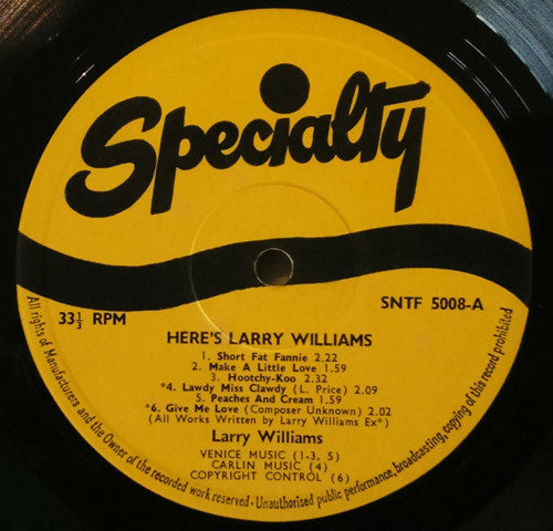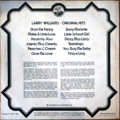 A1. Short Fat Fannie 2:22 A2. Make A Little Love 1:59 A3. Hootchy-Koo 2:32 A4. Lawdy Miss Clawdy 2:09 A5. Peaches And Cream 1:59 A6. Give Me Love 2:02 B1. Bony Maronie 3:06 B2. Little School Girl 1:51 B3. Dizzy, Miss Lizzy 2:10 B4. Teardrops 2:20 B5. You Bug Me, Baby 1:51 B6. Ting-A-Ling 2:03