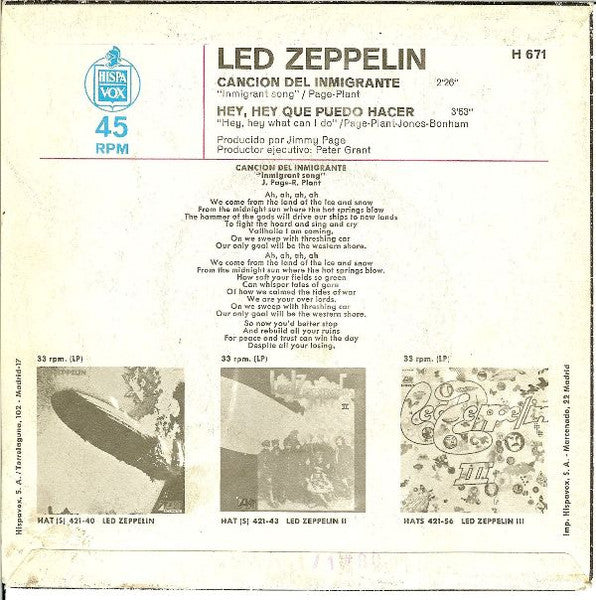 A. Cancion Del Inmigrante = Immigrant Song 2:26B. Hey, Hey Que Puedo Hacer = Hey, Hey What Can I Do 3:53