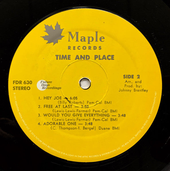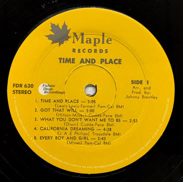 A1. Time And Place 3:05 A2. Got That Will 3:00 A3. What You Don't Want Me To Be 2:53 A4. California Dreaming 4:28 A5. Every Boy And Girl 2:43 B1. Hey Joe 6:05 B2. Free At Last 3:50 B3. Would You Give Up Everything 3:28 B4. Adorable One 3:48
