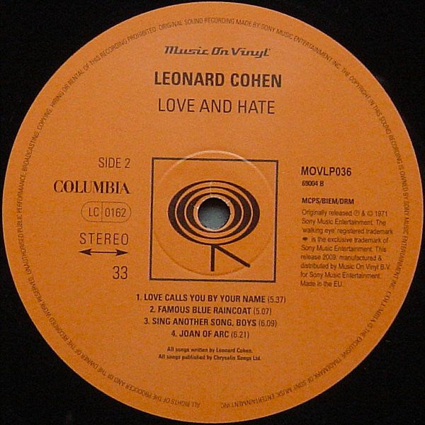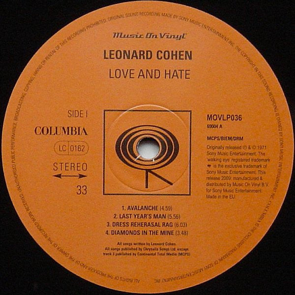A1. Avalanche 4:59 A2. Last Year's Man 5:58 A3. Dress Rehearsal Rag 6:02 A4. Diamonds In The Mine 4:00 B1. Love Calls You By Your Name 5:37 B2. Famous Blue Raincoat 5:06 B3. Sing Another Song, Boys 6:09 B4. Joan Of Arc 6:22