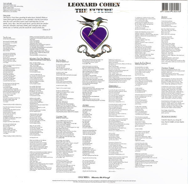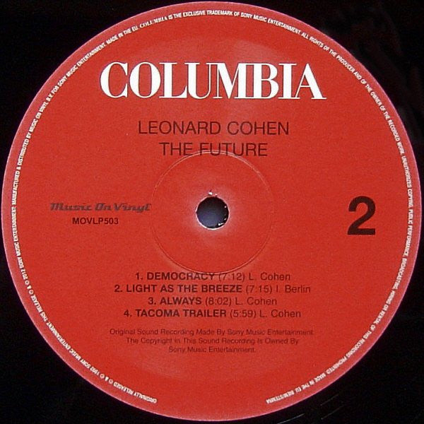 A1. The Future 6:42 A2. Waiting For The Miracle 7:42 A3. Be For Real 4:29 A4. Closing Time 6:39 A5. Anthem 6:07 B1. Democracy 7:12 B2. Light As The Breeze 7:15 B3. Always 8:02 B4. Tacoma Trailer 5:59