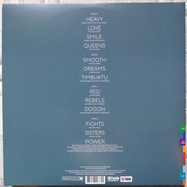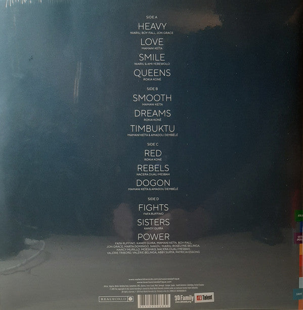 A1. Heavy A2. Love A3. Smile A4. Queens B1. Smooth B2. Dreams B3. Timbuktu C1. Red C2. Rebels C3. Dogon D1. Fights D2. Sisters D3. Power