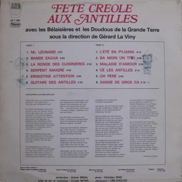 Les Bélaisières et Les Doudous Sous La Direction De Gérard La Viny - Fete Creole Aux Antilles (LP, Album)
