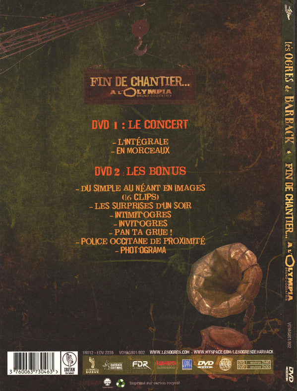 . DVD 1 : Le Concert DVD1-1. L'intégrale DVD1-2. En Morceaux . DVD 2 : Les Bonus DVD2-1. Du Simple Au Néant en Images (16 clips) 2DVD2-2. Les Surprises D'un Soir 5DVD2-3. Intimit'Ogres DVD2-4. Invit'Ogres DVD2-5. Pan Ta Grue ! DVD2-6. Police Occitane De Proximité DVD2-7. Photogram