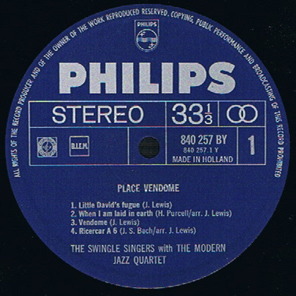 A1. Little David's Fugue 4:18 A2. When I Am Laid In Earth 5:04 A3. Vendôme 3:33 A4. Ricercare A 6 6:32 B1. Air For The G String 5:40 B2. Alexander's Fugue 4:52 B3. Three Windows 7:08