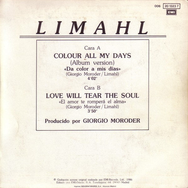 A. Colour All My Days = Da Color A Mis Días 4:02B. Love Will Tear The Soul = El Amor Te Romperá El Alma 3:50