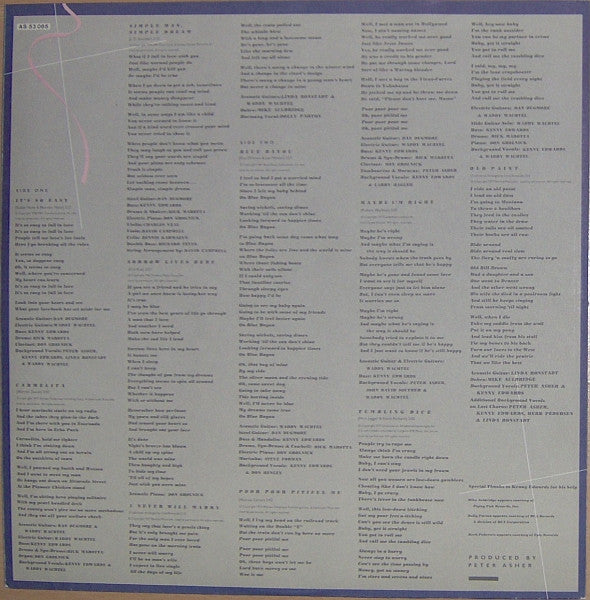 Distributed By WEA Musik GmbH Recorded At The Sound Factory Mixed At The Sound Factory Lacquer Cut At Tonstudio Pfanz Phonographic Copyright (p) Asylum Records Published By MPL Communications Inc. Published By Warner-Tamerlane Publishing Corp. Published By Darkroom Music Published By Wb Music Corp. Published By Golden Spread Music Published By Embassy Music Corp. Published By Normal Music Published By Acuff Rose Publications, Inc. Published By Leadsheet Land Published By Colgems-EMI Music Inc.