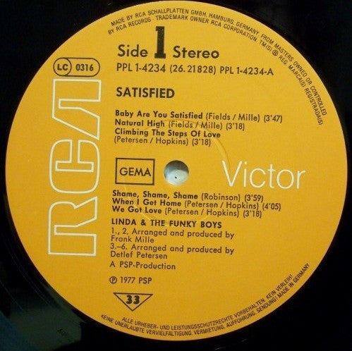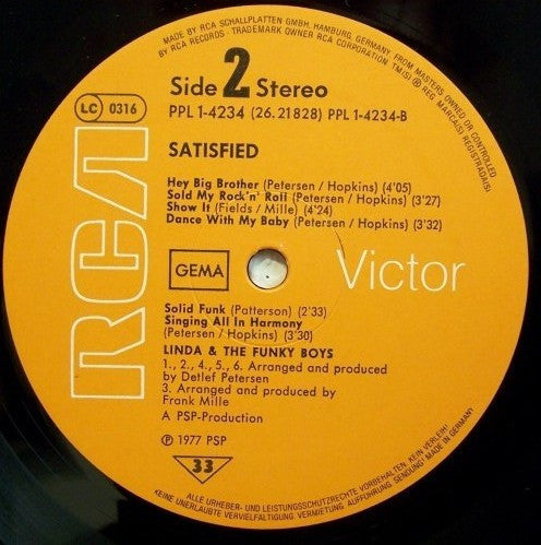 A1. Baby Are You Satisfied 3:47 A2. Natural High 3:18 A3. Climbing The Steps Of Love 3:18 A4. Shame, Shame, Shame 3:59 A5. When I Get Home 4:05 A6. We Got Love 3:18 B1. Hey Big Brother 4:05 B2. Sold My Rock'N' Roll 3:27 B3. Show It 4:24 B4. Dance With My Baby 3:32 B5. Solid Funk 2:33 B6. Singing All In Harmony 3:30