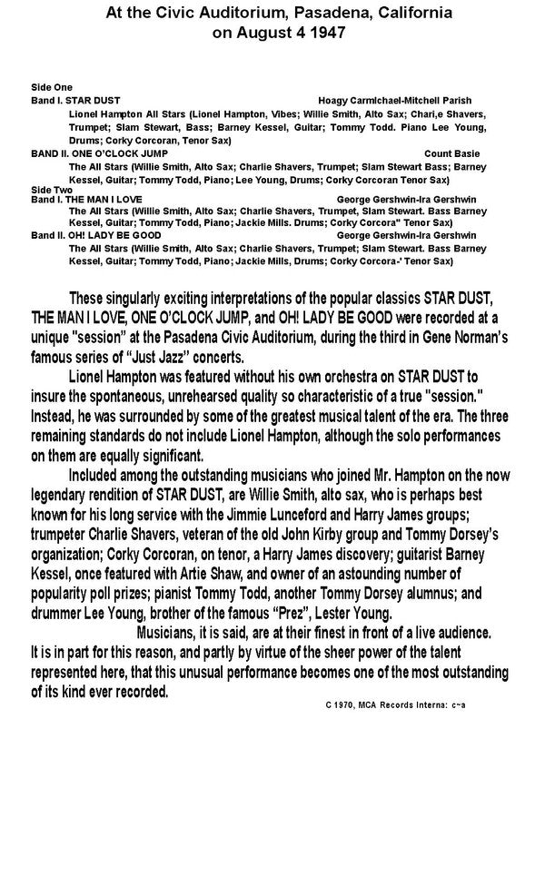 Lionel Hampton All Stars - Stardust (LP, Mono, RE)