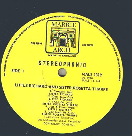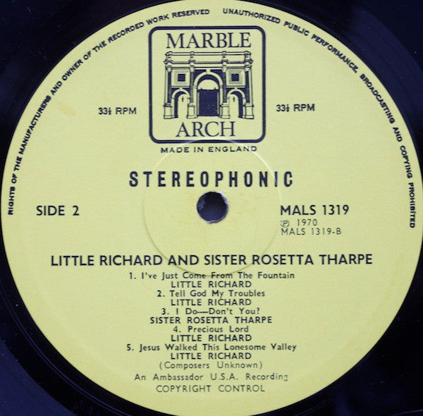 A1. Little Richard - Certainly Lord A2. Little Richard - Does Jesus Care A3. Sister Rosetta Tharpe - Shine For Jesus A4. Little Richard - Just A Closer Walk A5. Sister Rosetta Tharpe - God Leads Us Along B1. Little Richard - I've Just Come From The Fountain B2. Little Richard - Tell God My Troubles B3. Sister Rosetta Tharpe - I Do - Don't You B4. Little Richard - Precious Lord B5. Little Richard - Jesus Walked The Lonesome Valley