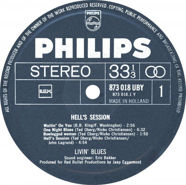 A1. Waitin' On You 2:47 A2. One Night Blues 6:40 A3. Bowlegged Woman 2:34 A4. Hell's Session 4:53 B1. Big Road Blues 2:46 B2. Black Panther 3:10 B3. Worried Dreams 5:11 B4. Big Black Train 4:00