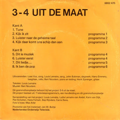 A1. Tune A2. Kijk Ik Zit A3. Luister Naar De Geheime Taal A4. Kijk Daar Komt Ons Schip Dan Aan B1. Dit Is Muziek B2. Luister Eerst B3. Dit Liedje.... B4. Ik Ben De Pop